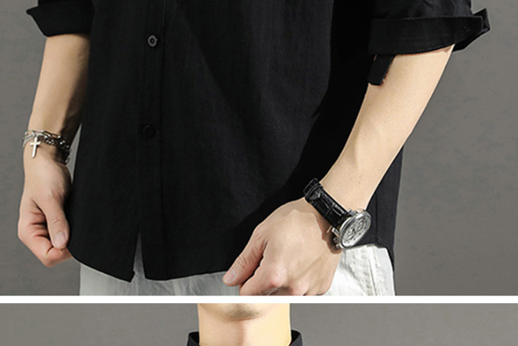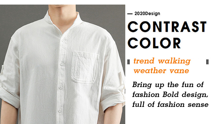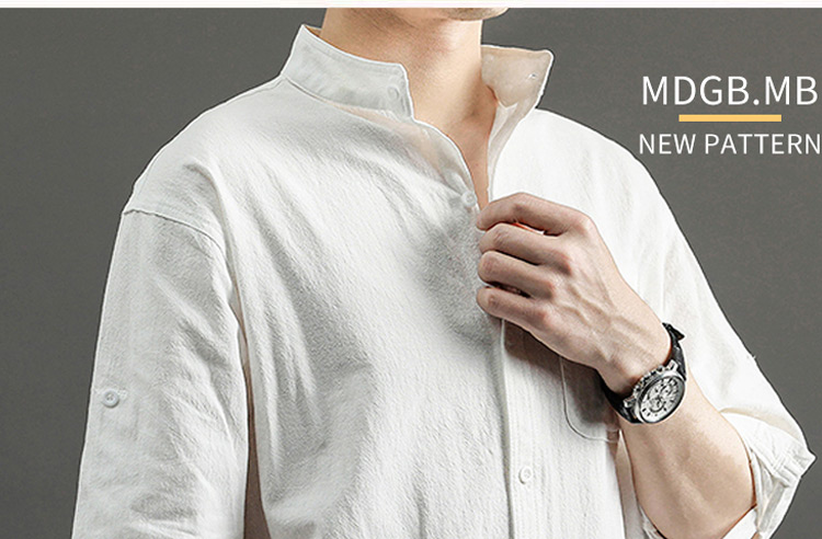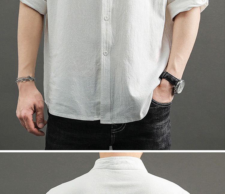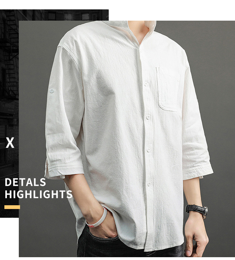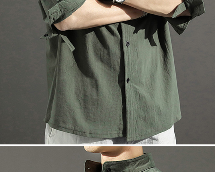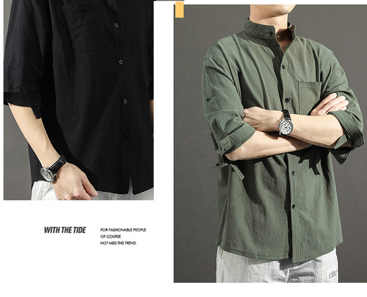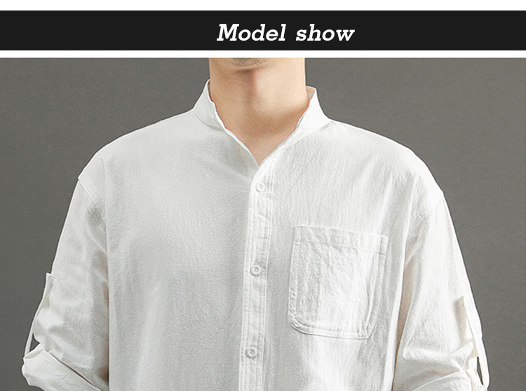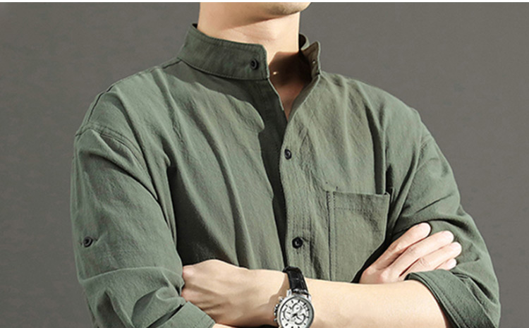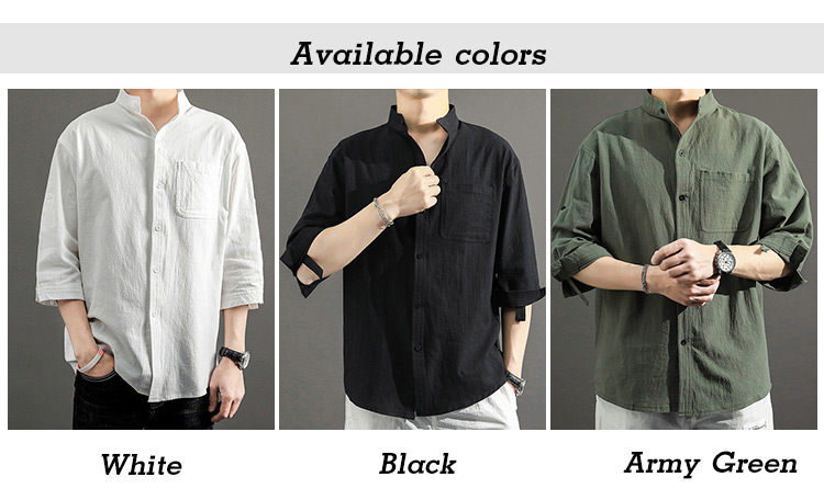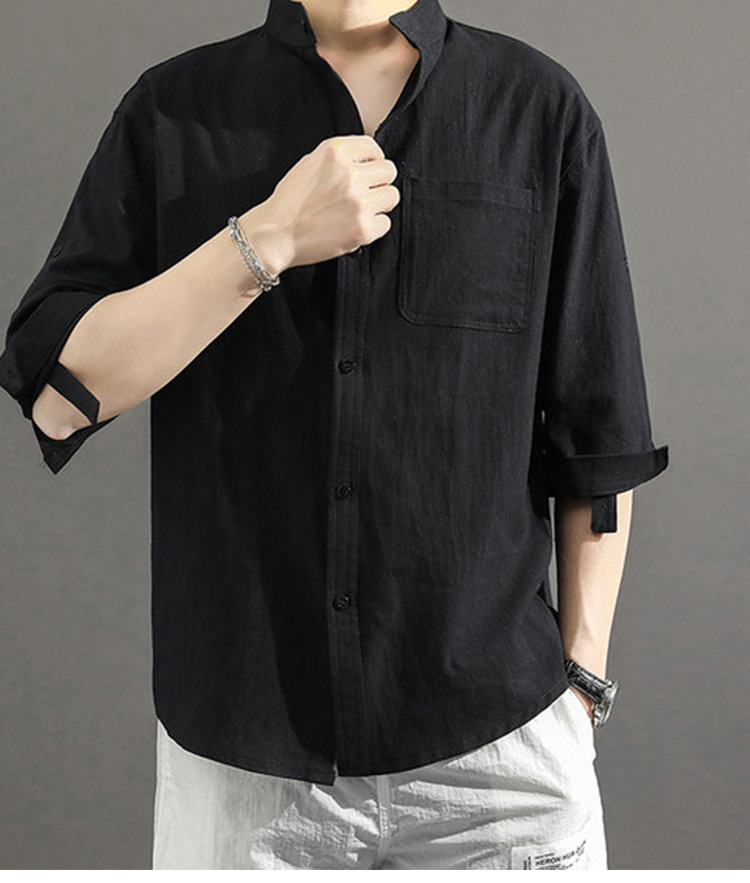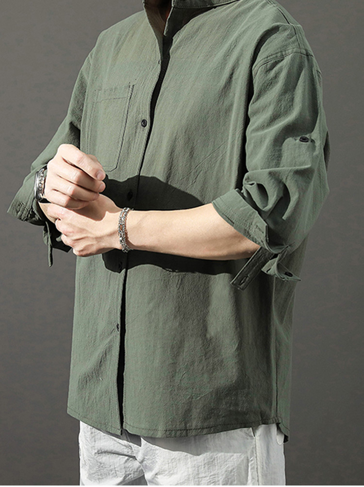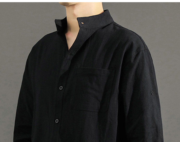 Japanese Style Plain Color Cotton Linen Shirt for Men